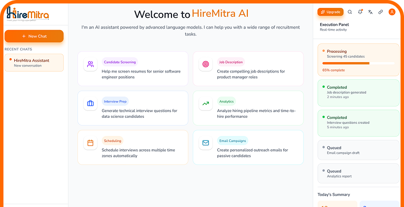 Candidates receiving little to no feedbackHireMitra transforms the process into a fast, intelligent, AI-assisted workflow that ensures quality, speed, and fairness in hiring.